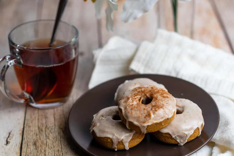 Making a delicious maple glaze for your donuts is even easier. While your donuts are cooling, you’ll mix powdered sugar, maple syrup, and maple extract into a large bowl. Then slowly whisk in your preferred non-dairy milk one tablespoon at a time until it reaches the perfect consistency (just enough to coat a spoon).